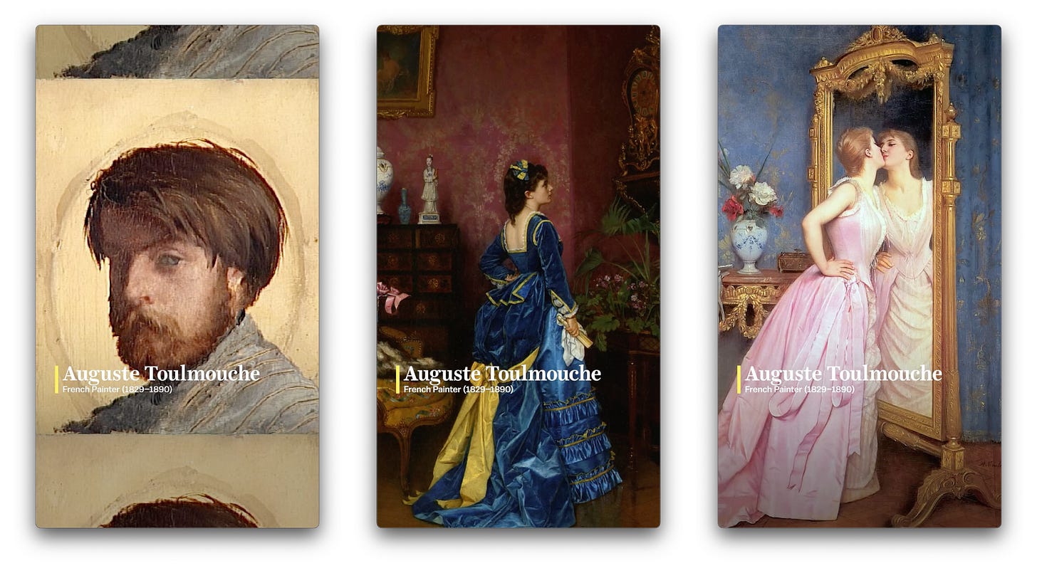 "it was painted by this guy: Auguste Toulmouche. Who was known for his paintings of fashionable and emotionally expressive French women"