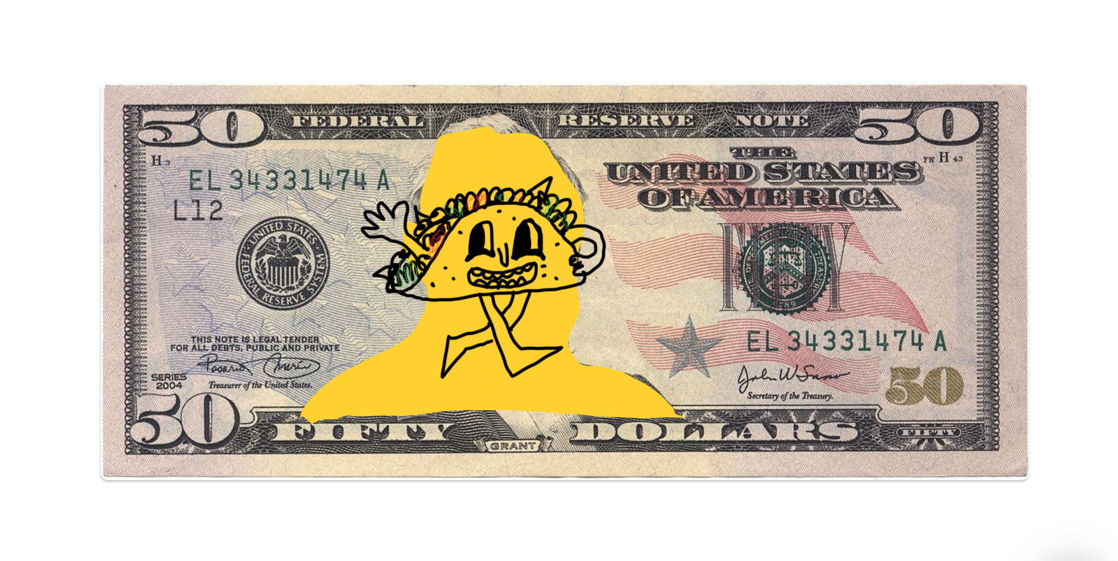 You're still smiling at your Andrew Jackson, and you invite me to a taco.